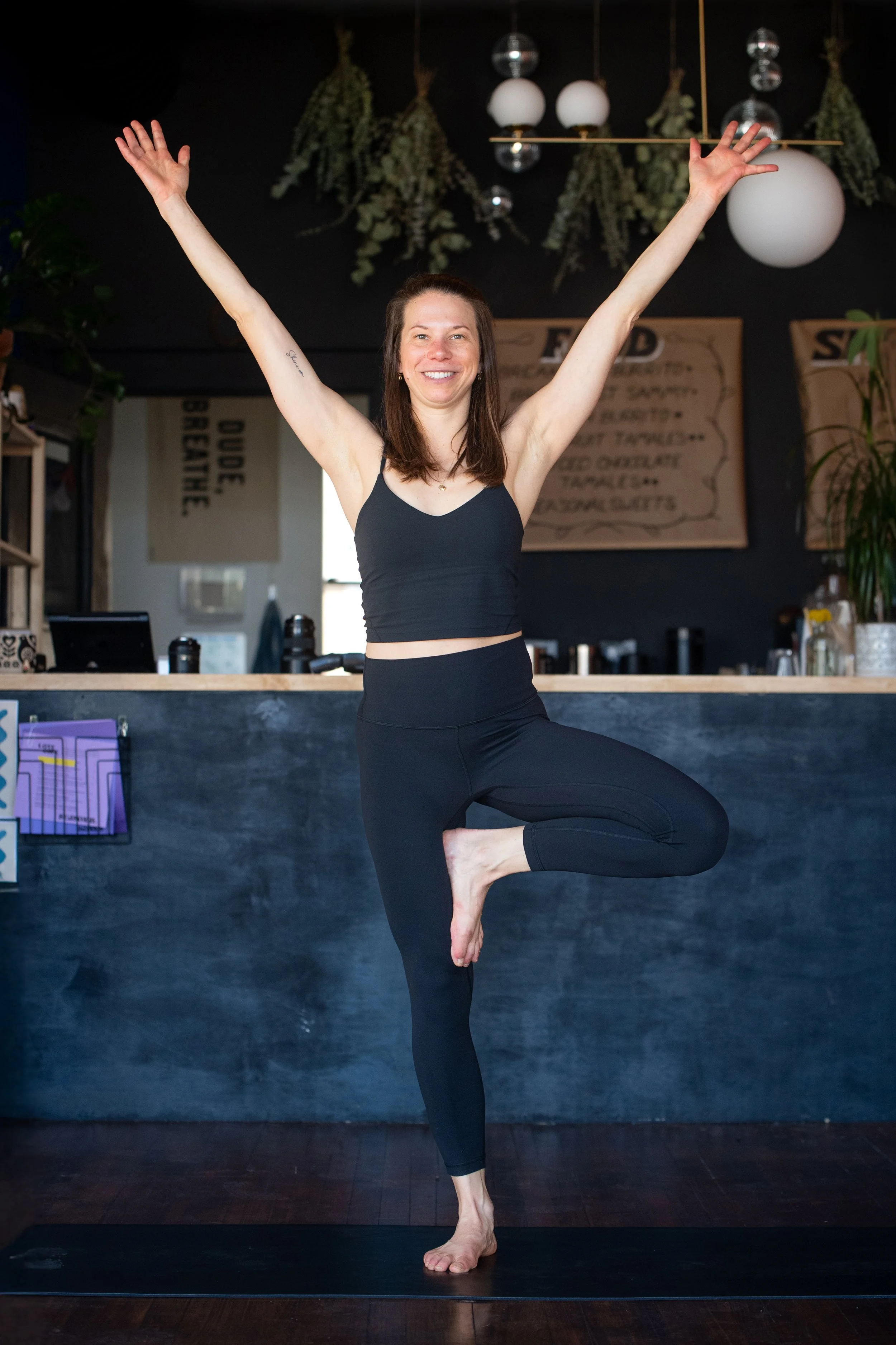 She loves teaching beginner and mixed-level classes with an emphasis on proper alignment to reduce injury, and find more depth within the pose. She continues to come back to the practice due to the numerous benefits she’s discovered throughout the years including a total body, mind, and spirit reset.
